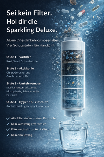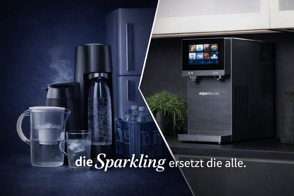 Die Produktion und der Transport von Flaschenwasser benötigt viel Energie und Rohstoffe. Unser Wasserfiltersystem ist effizient und nachhaltig, reduziert Einweg- und Pfandflaschen und liefert Ihnen jederzeit gesundes Wasser direkt aus dem Hahn. Mit dem SPARKLING Deluxe geben Sie Ihrem Körper etwas Gutes und unterstützen gleichzeitig eine nachhaltige Lösung für die Umwelt.